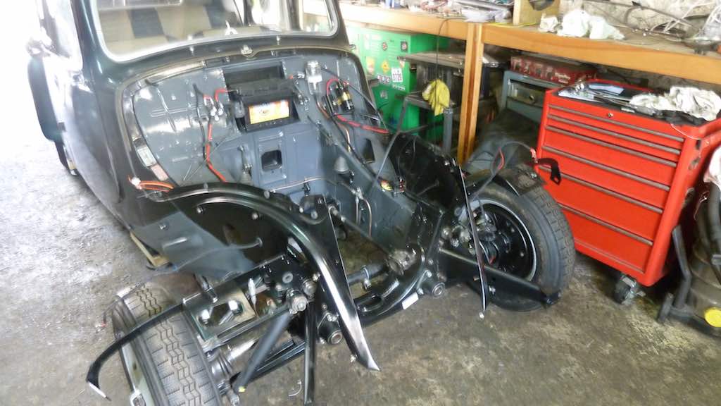 I had to disassemble the front of the car again, so off with the bonnet, grill and bumper. Lights were taken off as well as the cross member. An hour or so of preparation. Car looks like it did months ago now