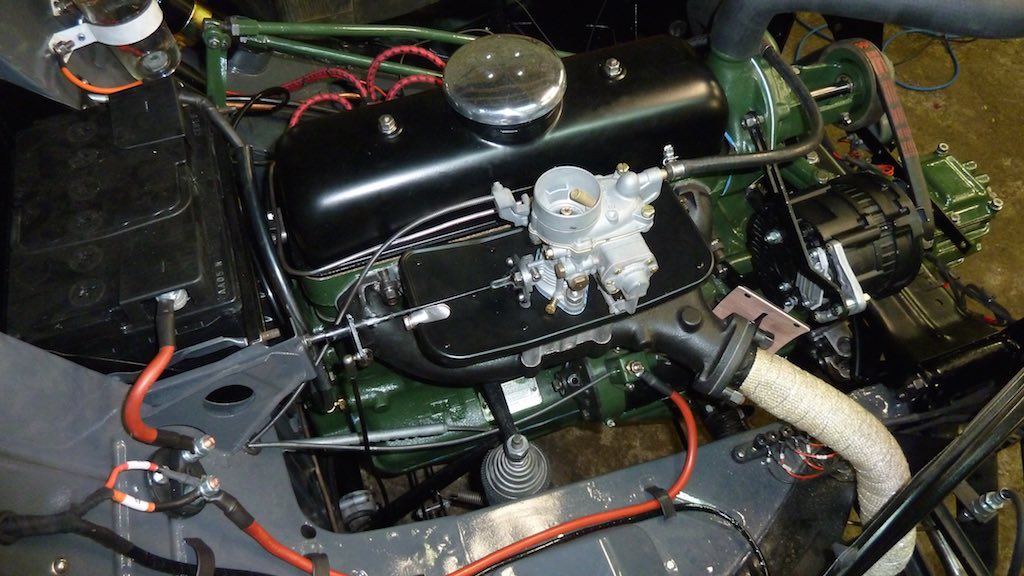 Then onwards with the engine accessories - the carb went on quickly and all connected up. I managed to fix the choke cable and it is all greased up and works perfectly. Alternator installed now but I think I may need to fabricate a new extension bracket as it is just on the limit of being tight enough for the fan belt.