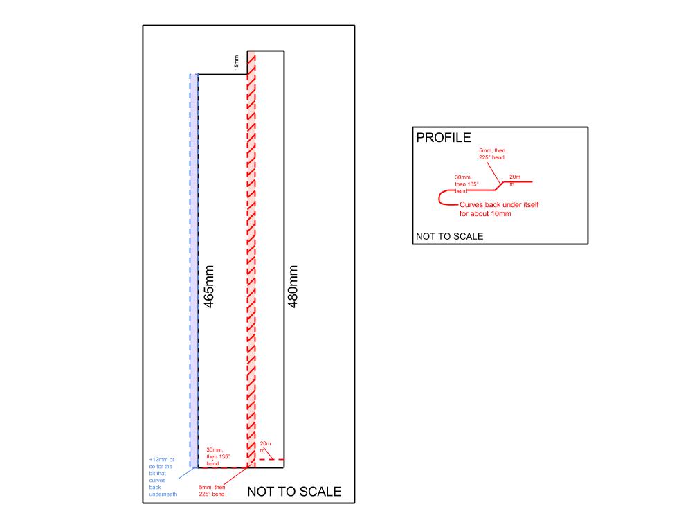 This image of the severely bashed original shows that each single piece needs to be bent in two places, along its entire length.