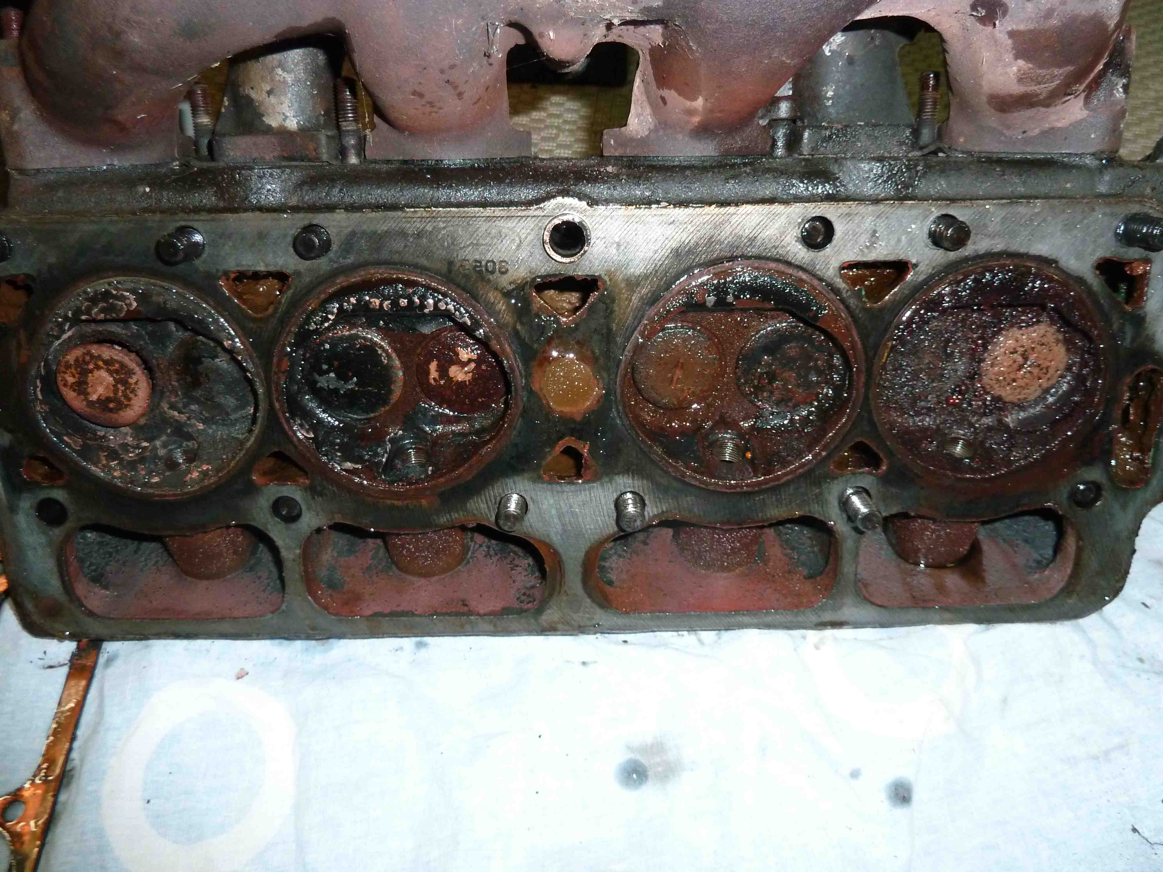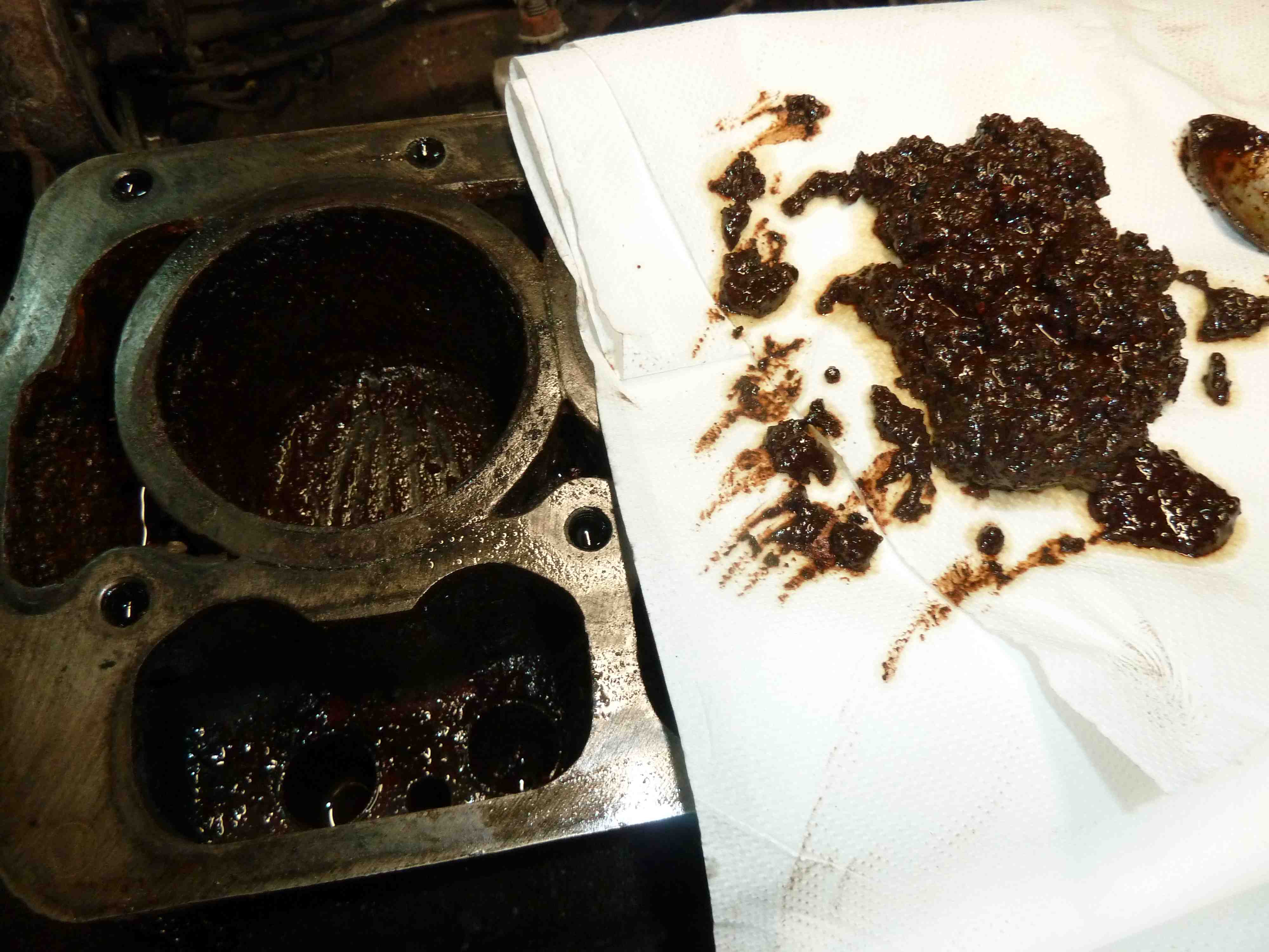 The piston barrels were full of my loosening concoction so after withdrawing it with my giant syringe I wiped them as clean as possible. Piston 4 is chipped and broken a little. Piston 1 is chipped, broken and the barrel is rusted out. Attachment: