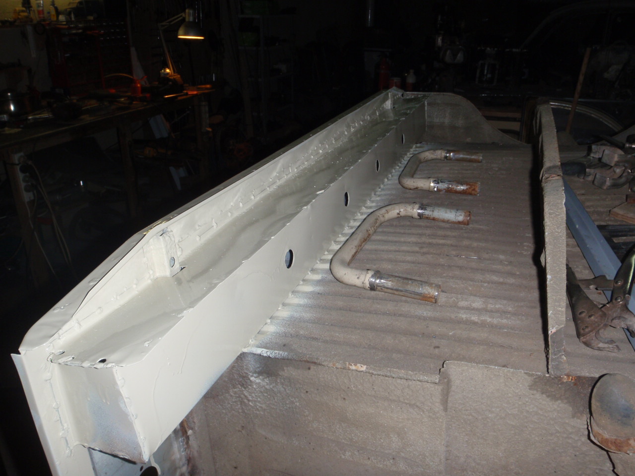 Winter is over, I can continue work on Odin. Done nothing since Nov, too bloody freezing cold. Thanks to Janez in Slovenia, the rear cross bar is now in place and it fitted nicely, thanks Janez. Working on the side panels now. Bloody reproduction panels do not fit very well. Lining up the rear side panel mating the sparewheel flap is just hard. The sparewheel panel is way off. Had to cut the hinge off and move over the original. The panel was hanging too low so the two lock didn't fit. At the same time, the lock holders are also too big in diameter. The spring didn't have any effect just moving around with no tension on. Had to move over the original holders. What a f...g nightmare fitting these crap reproduction panels. This van MUST be ready for Raid Afrique  Attachment: