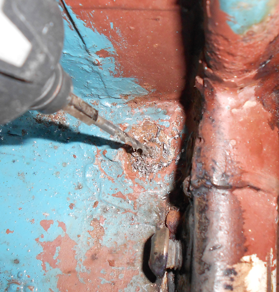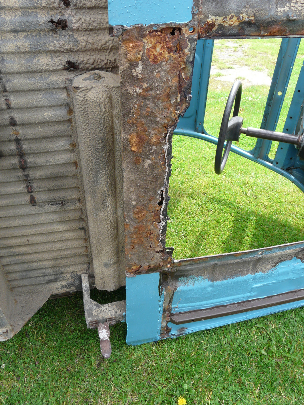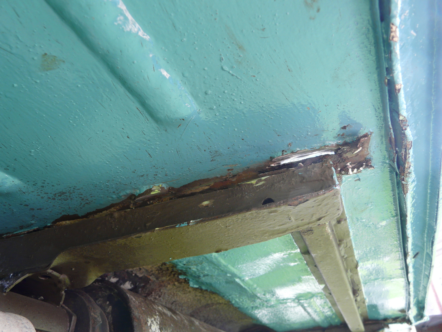 Peeved, I went back to the body-off job. Still couldn't get the body to separate from the chassis. So I had a good look underneath... and discovered a bit of bodging that an old-school French farmer would have been proud of: