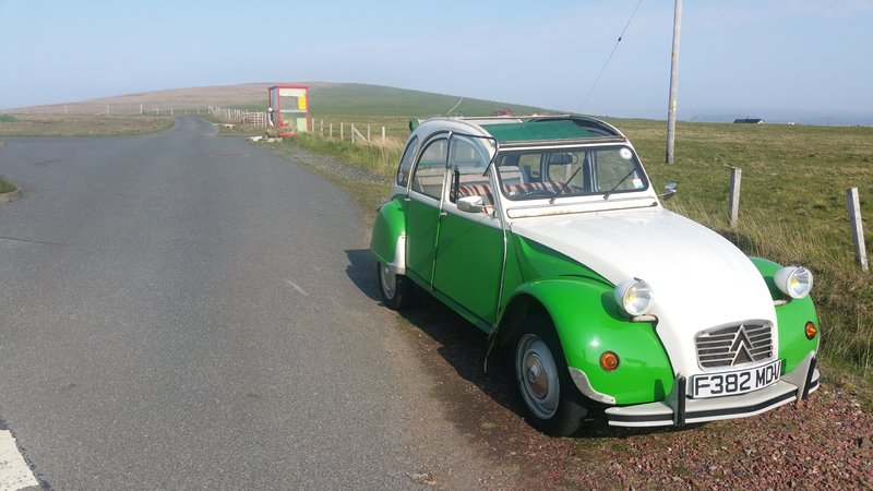 Had family visiting on holiday last week. I dropped them off at the airport on Tuesday, so have the house to myself again  I ended up driving close on 1000 miles in 8 days, almost exclusively in the Golf apart from spending a couple of hours driving around Unst in the 2CV on Sunday afternoon. I was back to work on Wednesday, and so far the weather has been beautiful enough for me to commute in by 2CV. Hood fully open, of course.