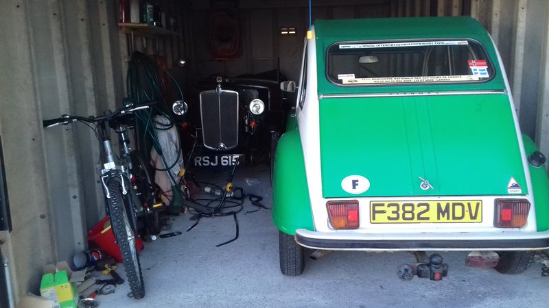 How to fit a 9.5ft Morris Minor and a 13ft 2CV in a 20ft long garage.
