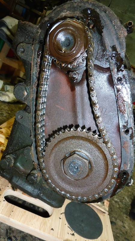 Timing chain cover next. I think this chain is a little slack. I am sure there is a chain tensioner device that is made for these now - I must investigate further. Attachment: