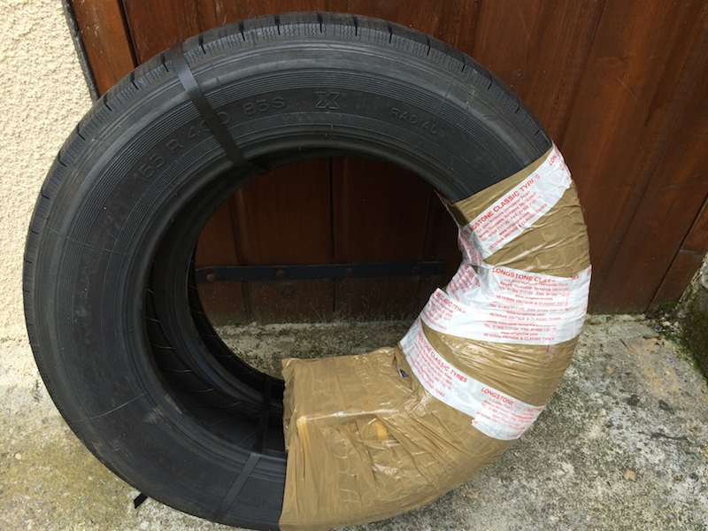 Must be my birthday today. Just received some new tools so I can start dismantling the front end of the car. Plus I got 4 new tires and inner tubes from Longstone Tyres in the UK. Free delivery and 2 days to get here, can't beat that, specially as I can buy VAT free on the business (another ancient support car for the cycling trips  ) Attachment: