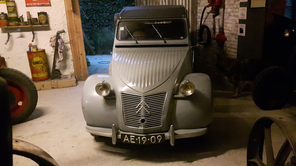 Helas it's not mine.... Was driving my blue today and smelled a little petrol. The last time i drove i thought the fuel consumption was a bit high. So i stopped and checked under the bonnet. And yes there was a little leak on top of the fuel pump (that was rather new). So at home after cooling down it wanted to take the fuellines of to remove the pump. To my surprise the clamp on hose near the pump wasn't tightend up at all....fool...that gives you 41 years of 2cv experience...  )