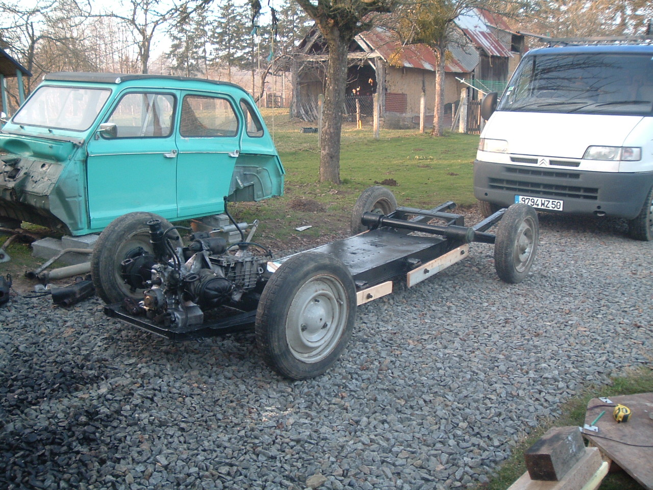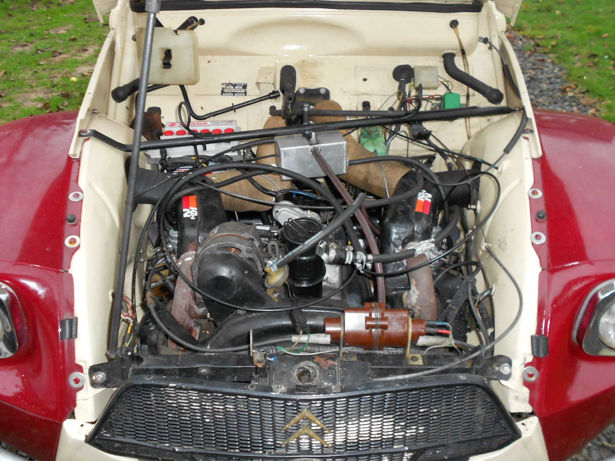 I bought this Dyane back in Jan 2011 after it had sat in a French barn for 5 years. The car started on second key which shocked the old owner. After stripping it down to nothing and sand blasting the chassis which had very little rust. The body had all the rot removed, panels replaced - lower pedal, floor and boot. The body was resprayed in idividual parts to original colour with ''D*lly'' type stripes etc. The original 602 engine was refitted after inspecting it (to get it up and running). The suspension was lowered with 170% springs and the caster angle corrected. After holiday at the International meeting in Salbris engine was replaced with Visa/ LNA 652cc with original gearbox modified for sensors. After the sensors and black box failing twice change iginition to 123 EVO. Later changed the carbs to 2 AMAL 28mm motorcycle carbs and rejetted many times to get correct mixture over the rev range. The car is not much faster but had to do something different.