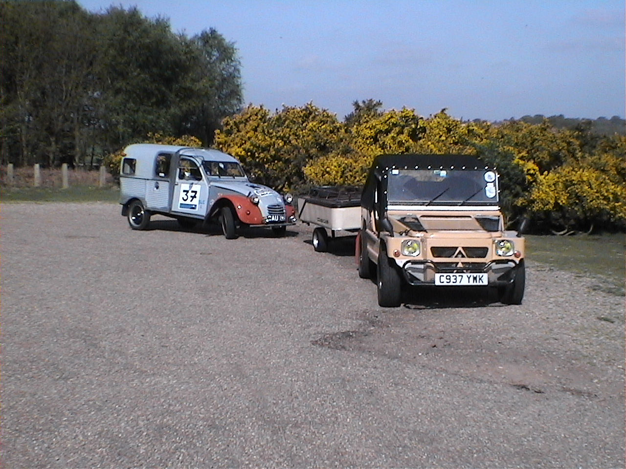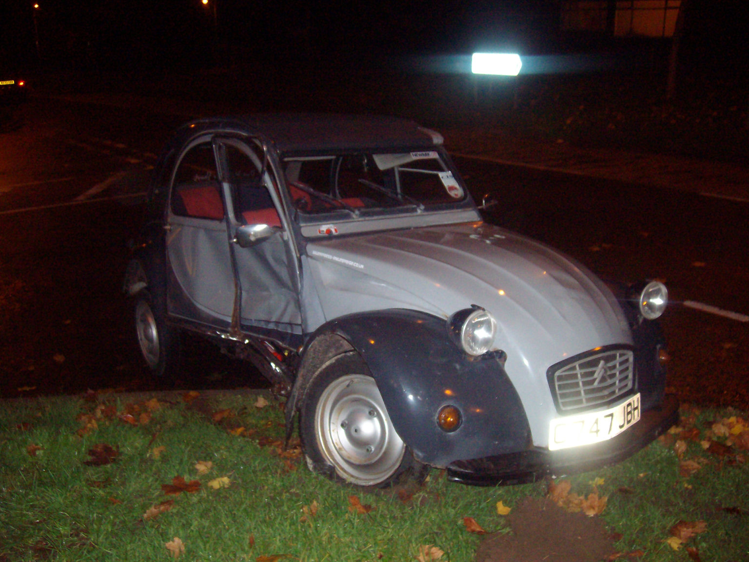 Hi, no Charley still sit's in my garage, not sure what to do with him yet, bit reluctant to just let him go, as i said he was saved from the crusher with just seconds to spare, the guy in the yard had the JCB bucket resting on the roof ready to squash, had to patch the holes in the roof to take it home, after doing the work for the MOT my sister inlaw bought it off me and took it down to Brighton, then moved to the Isle of Wight, then two years ago she had him vandelised, smashed the lights clean off the bar, wrecked the roof, dented the bonnet, boot, doors and wings, so i bought him back and put him on the road, my son had his Blue 2cv and i had the Grey/Grey and the Jeep, hence the earlier pic of all three, then the blue 2cv was crashed beyond repair and my son neaded another car, so he bought Charley, then as my son turned right into a junction a guy from behind who couldn't stop ploughed into the side of him, that was last November, and he's sat in my garage ever since, here's a pic of it just after i got an MOT on it, note Duck tape on roof, all it required was a patch the size of a fag packet to the floor for it's test, and i got it from the scrap yard for £25, the other pic's are of it after i'd cleaned it properly before my sister inlaw took it off me, and with my old D*lly, sorry if i've bored you with my tale, ha ha i do tend to wabbit on sometimes. Attachment: