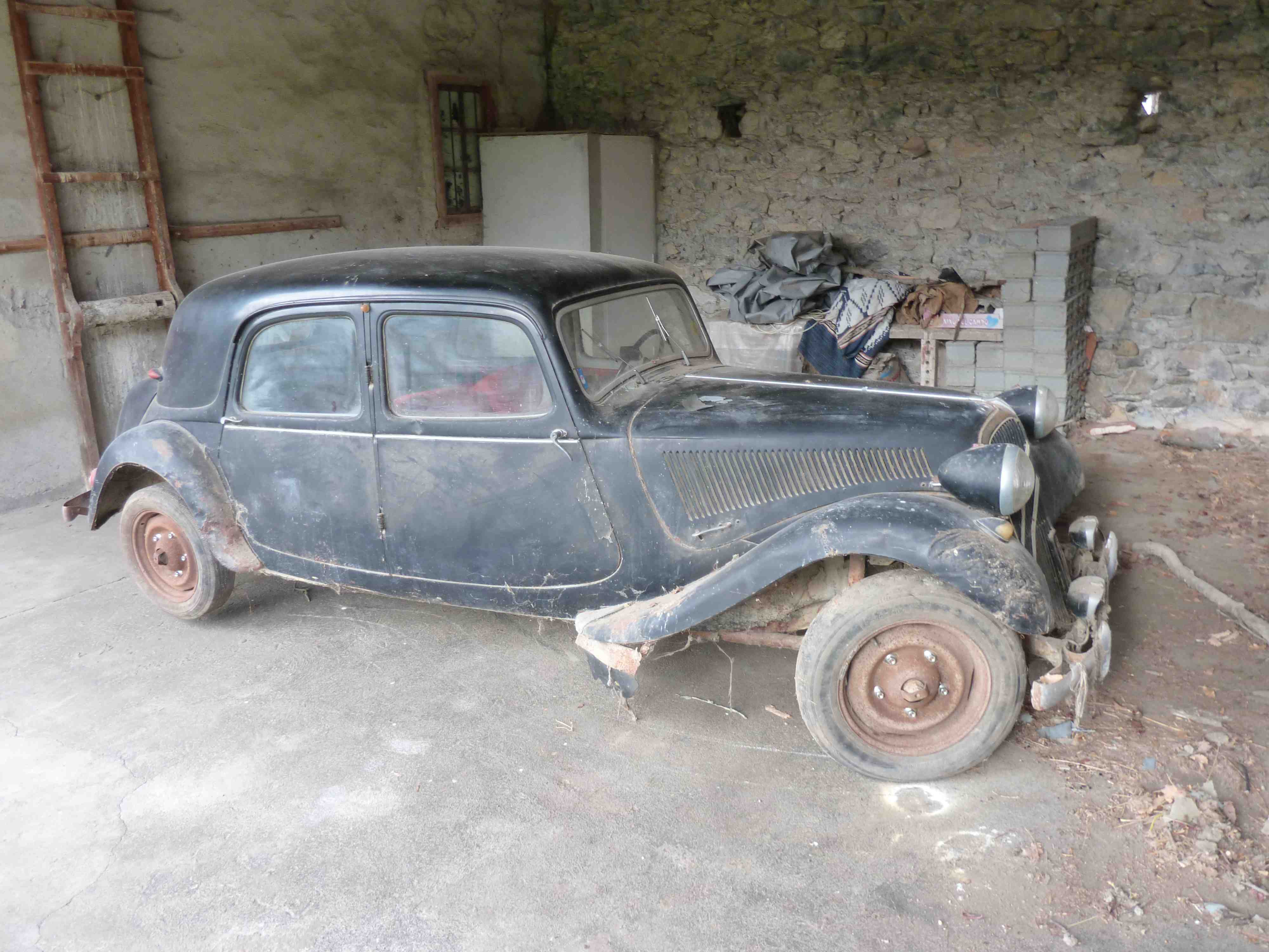 Holy Crap!! I own it..... the guy was so happy that I was able to move it and said if I didn't want it then he would scrap it as he had no means to do anything with it. He wanted no money for it. He last drove this car in 1972 when he parked it in the barn. This was the car he learnt to drive in. The original owner who bought it brand new was the boss of a Sandal Factory which used to be close to our village. Then the father of my neighbour bought it and used it for 4 years before parking it up - Petrol cost 20 centimes per litre when he last filled it up - I love a story. I have the Carte d'Identity and Permit de Conduire for the owner (who is actually dead  ) and will request a replacement Carte Gris from the prefecture. The job of transporting it went quite smoothly in the end although my trailer is as small as you would every want it. Time to sell the Simca 6 to free up some money to renovate this 1955 Traction Avant 11CV - anyone want to buy it  Attachment: