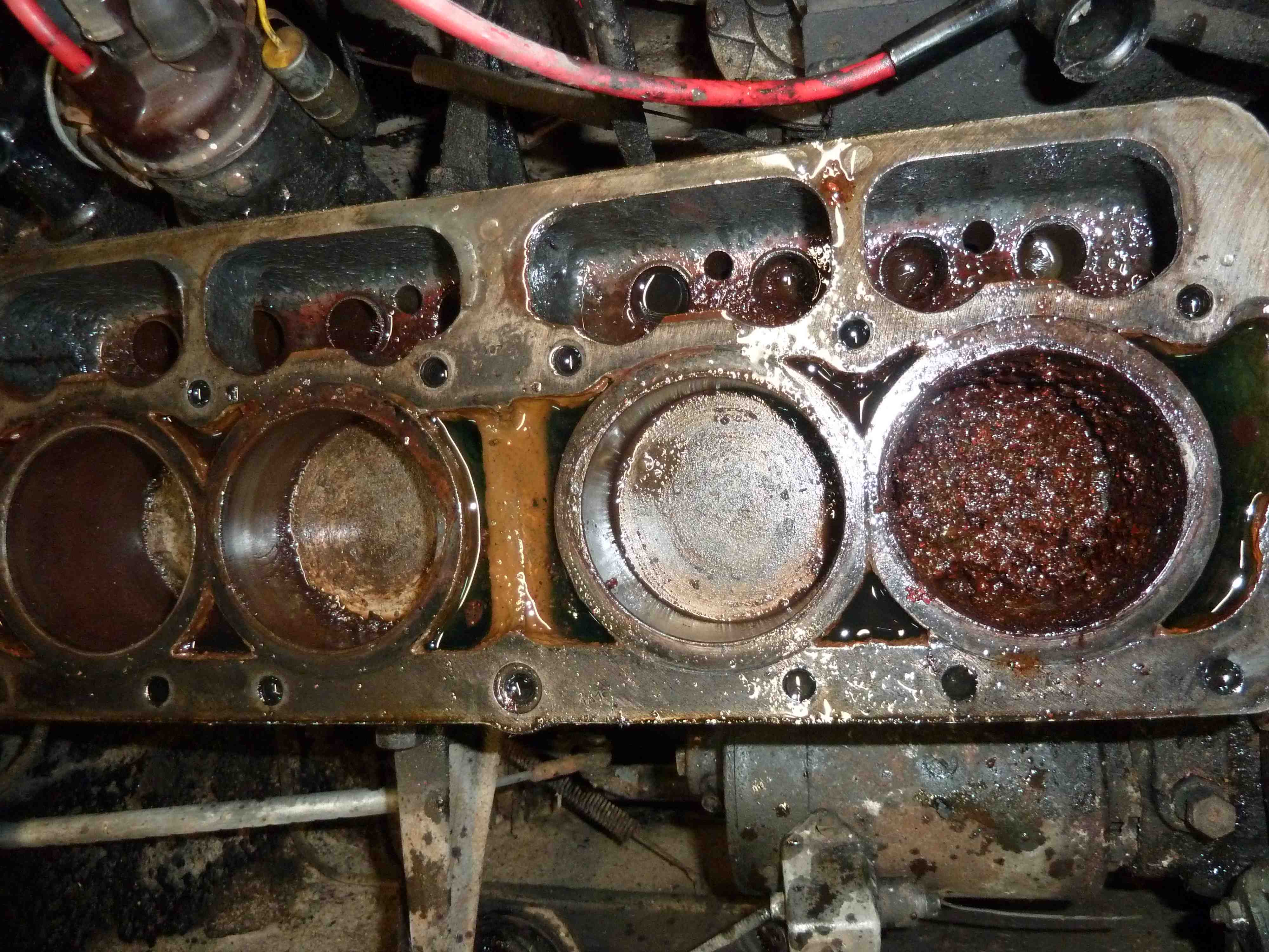 The piston barrels were full of my loosening concoction so after withdrawing it with my giant syringe I wiped them as clean as possible. Piston 4 is chipped and broken a little. Piston 1 is chipped, broken and the barrel is rusted out. Attachment: