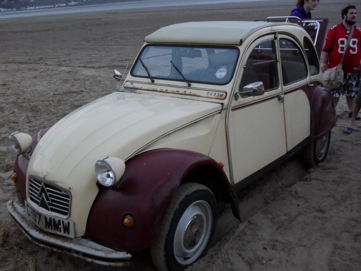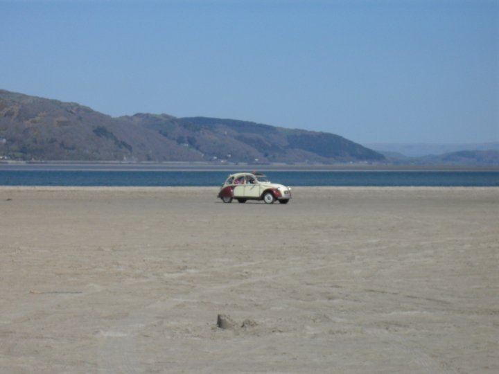 File comment: On the beach at Ynyslas (near Borth); notice the duct taped bonnet hinge