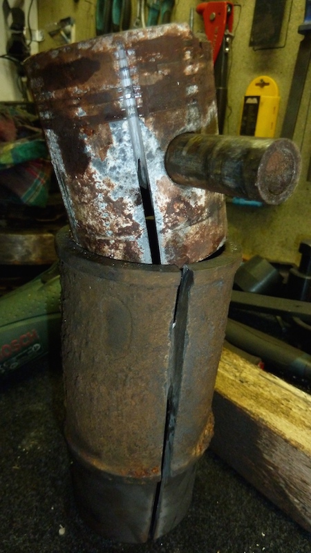 So I managed to get the pistons out of the sleeves today. I tried hammering them out but absolutely no movement. So I just got the grinder out and cut them apart. I needed the con rods for the new piston set as new con rods are €75 a piece... Attachment: