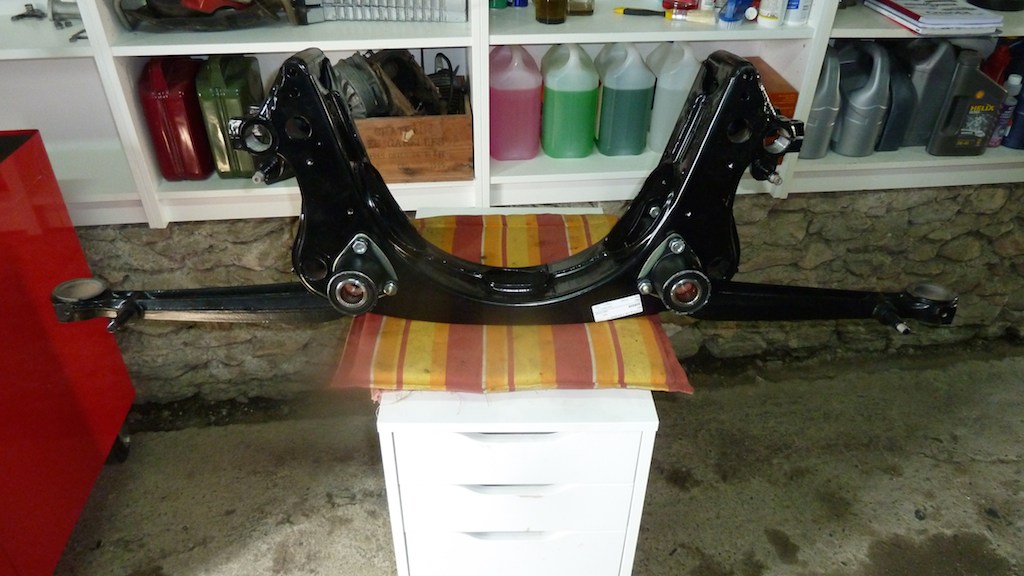 When I removed the silent blocs from the front cradle, I managed to damage the cradle a little using the press. It was repairable but when looking through the costs to sandblast and paint and then replace all 4 silent blocs it came to around €650. A complete replacement cradle with silent blocs installed plus arms was on €700. So no brainer, I ordered it and received it yesterday. I just packed up all my old parts to be shipped to Classic Automobile Services in Holland. Attachment: