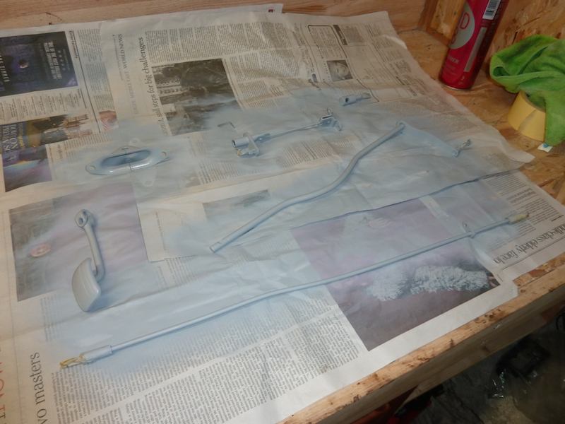 And I finally got the first part back on the car - the handbrake mechanism  Attachment: