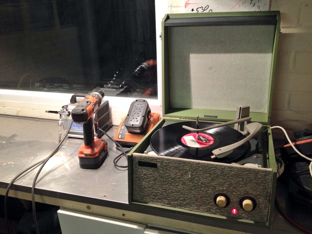 . Got the Dansette in there now although in green it doesn't really fit with the red/white theme.