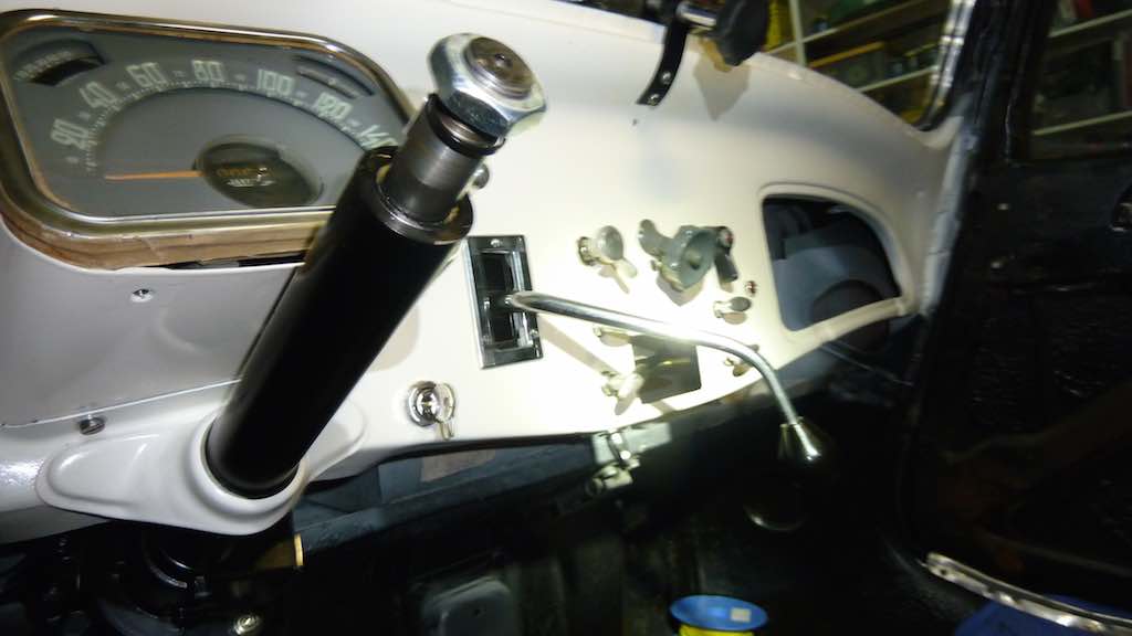 And finally I have a steering column back in the car. I tightened all the steering rack components and track rod ends and put the steering wheel on just to try it. Couldn't feel much difference but then I think I might need to put the tires on the ground for that  Attachment:
