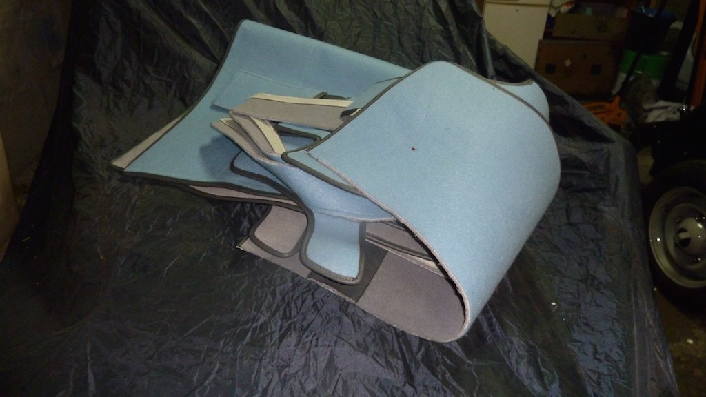 On and On and On as they say. So I am trying to get all the jobs done and out of the way to stop providing me with an excuse not to start on the engine rebuild. I think I am pretty much out of "other" job now. I put in place the rear seat arms and fixed them permanently. I also made good the rear parcel shelf as the vinyl I had cut to the template was a little short with my new headliner. All good now though. I found the carpet set we bought from Retro Mobile.... not this year... but last year (nearly one of the first things we bought for this car  ). It is from Neoretro and is pretty good quality. Attachment: