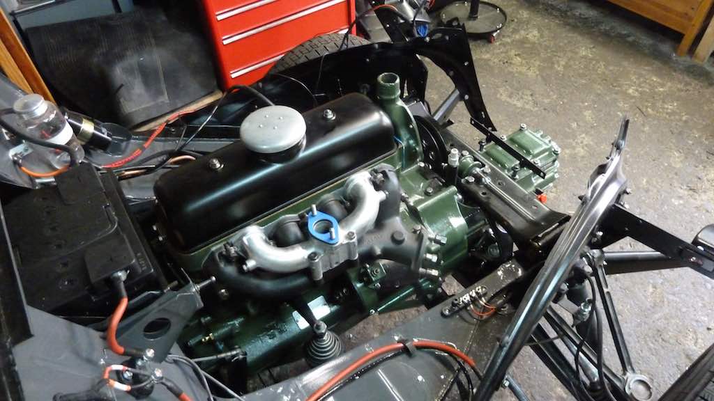 Just stopped for lunch (bloody juice, now 8 days) but about to start putting the engine back in the car - gearbox is attached