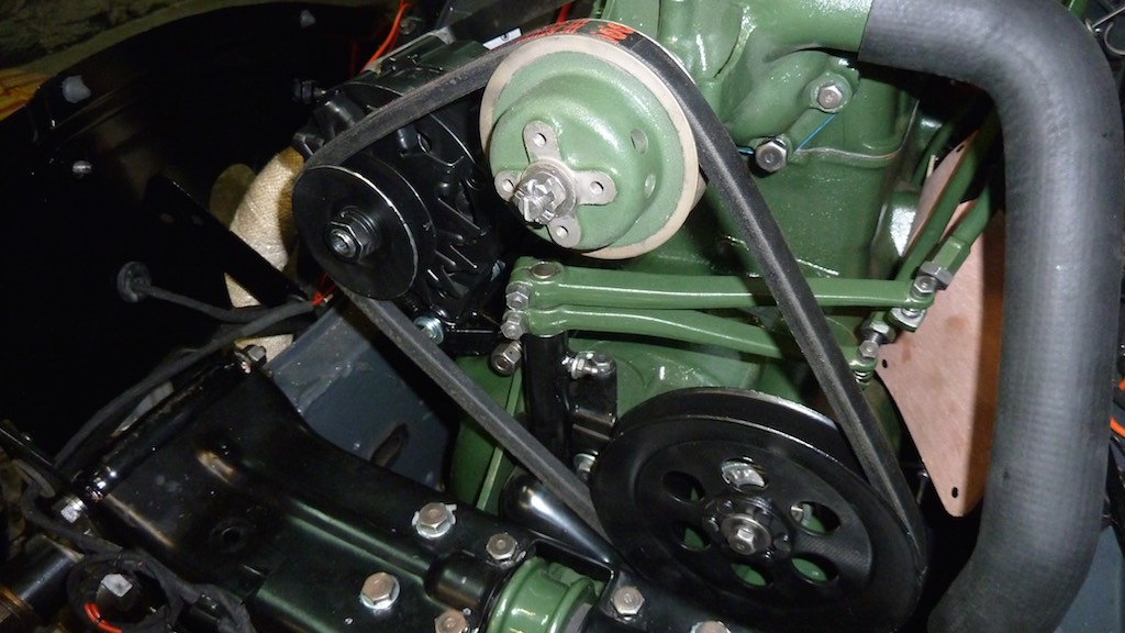 EDIT - just a thought on your question. This is a 12 volt conversion so the standard fan belt would normally have it the dynamo. So the alternator has a slightly smaller pulley to spin faster. I am about 1cm short I think so hence the fabrication option as it is a new system.