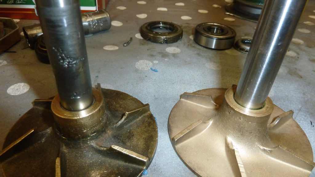 So on with the water pump first - the two spindles and turbine side by side. The new one is a lot better and is already attached to the spindle Attachment: