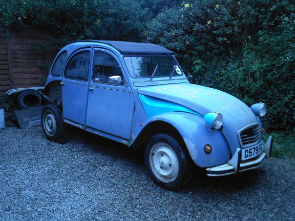 Right, Nice to be back everyone. I started stripping out my 2cv to see what really lies beneath the rust, dirt, socks and yoghurt lids.  Yes believe it or not all of those were uncovered. Right got you all some colour photos of what been happening recently. I got down and dirty scraching of the paint and rust. Well i decided to get another LH floor well as the previous welding looks like it was done by an 8 yr old affraid of sparks. So wanted panels now are, X2 inner wings both sides, LH floor well and boot floor. They are all fairly expensive with me only earning £10.59 a week + £5 field money so £15.59.  Got to get savin. I have decided (all be it a little early to do celeste blue car with same colour wheels with chrome wheel caps. You may disagree. I think it will look different and personal to me. Also got an engine + gearbox 4 sale if anyones interested. Let me know. Thanks all and more update on mi car comin up soon. Regards Tom