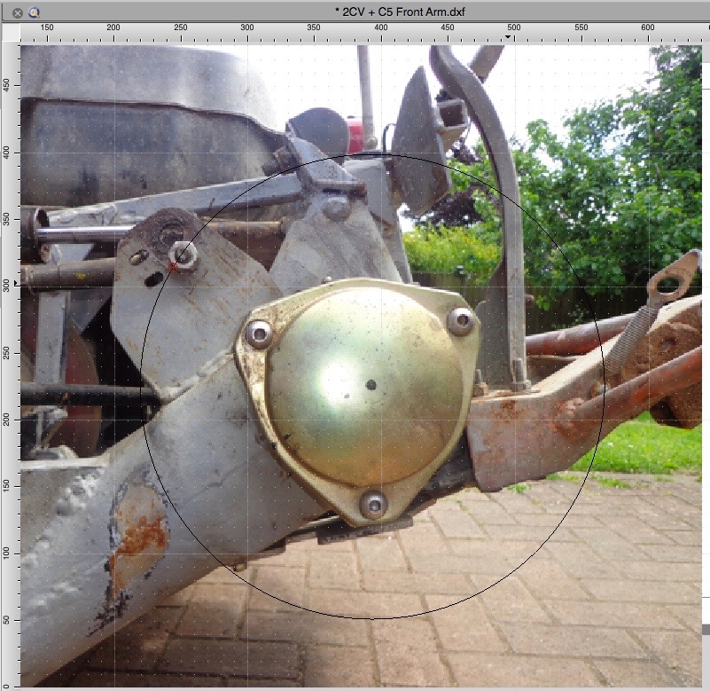 With the spring setup as on the picture, the suspension works more progressive, as the radius gets larger when the wheel moves up, a standard 2cv suspension is also quite progressive because of this sort of setup, unless it's lowered to much.