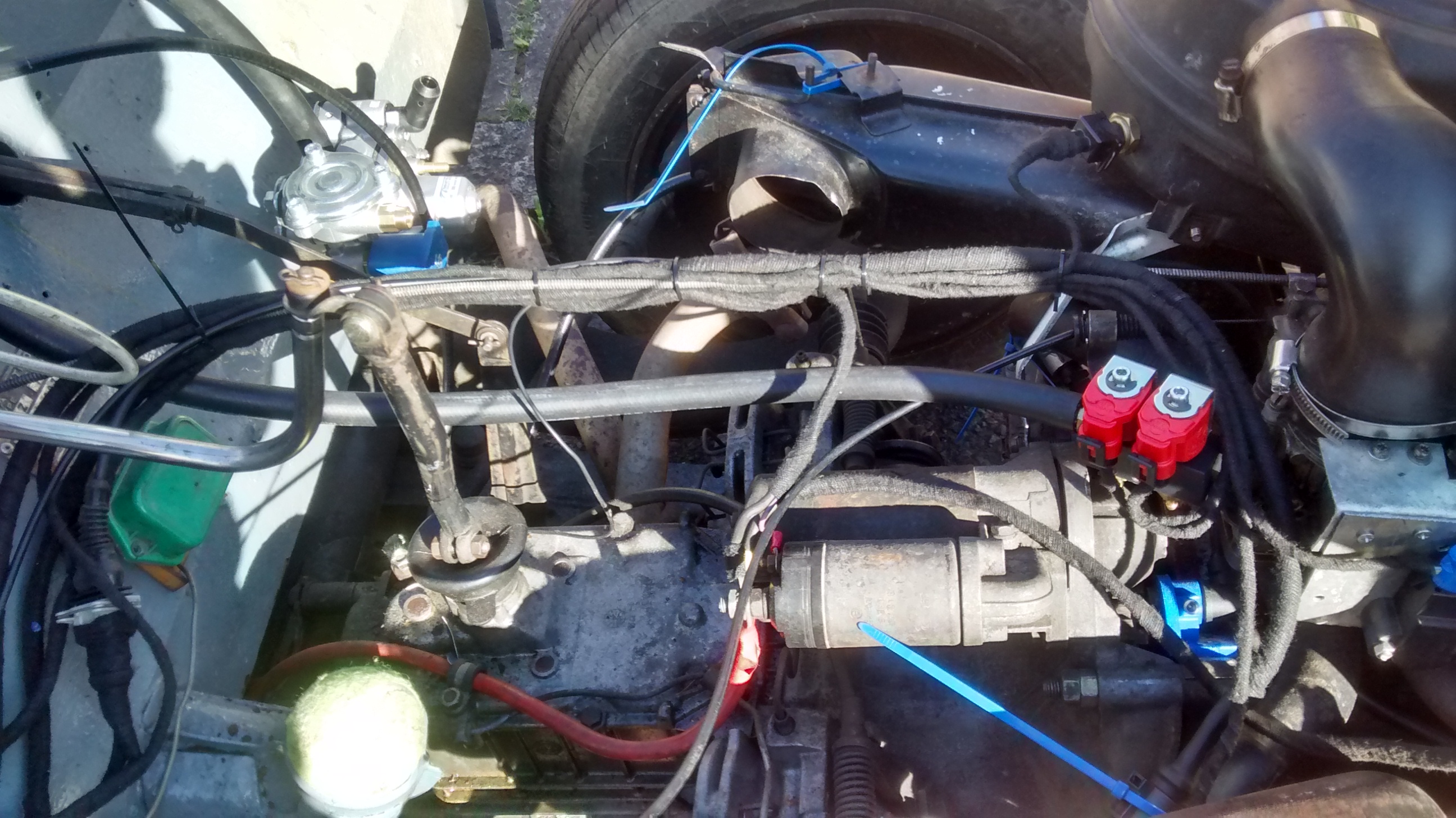 I am reluctant to take any more off, before I get the bonnet done, so tidied the wiring a little in the engine bay. I've put the lpg injectors and reducer in place to help determine the routing of the wiring loom.