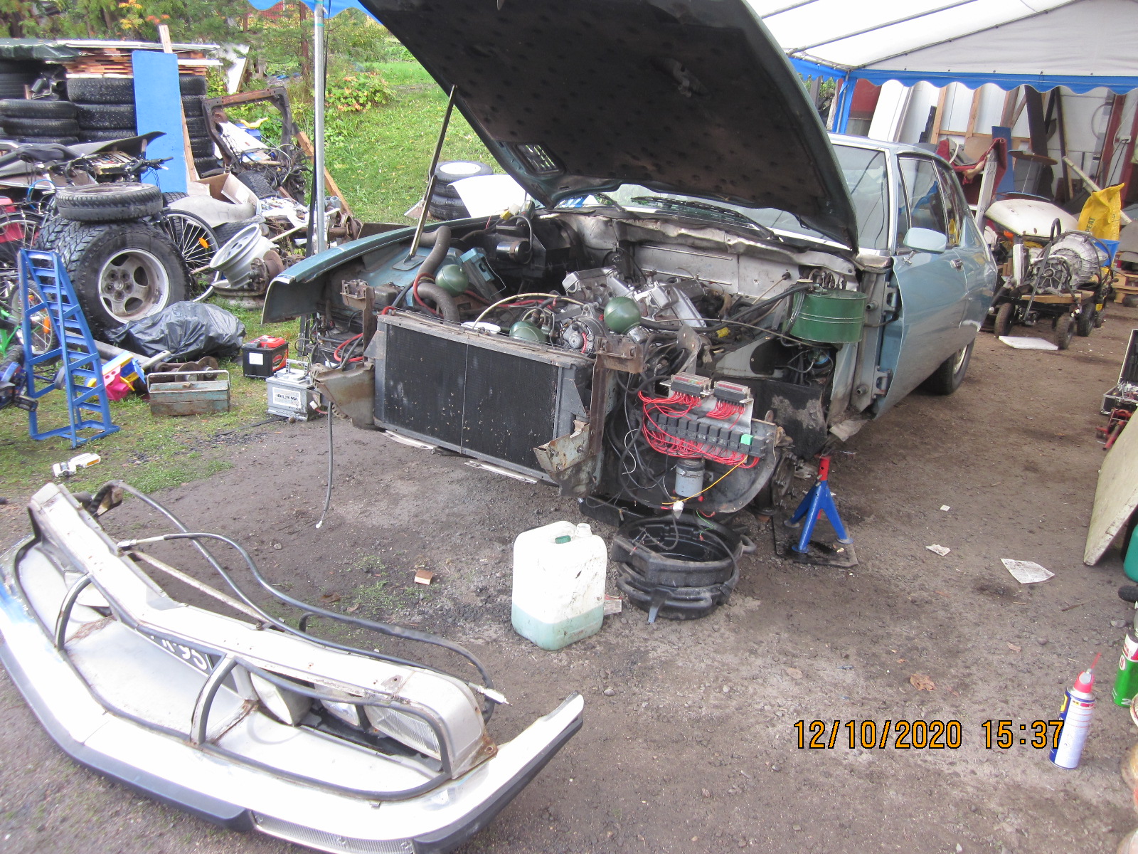 And simple, couple of hours today at garage, only exhaust to remove and engine is ready to lift-off. Then steering and C5 hydraulic pump back, and move her to "small garage", then there is enogh room to see what is inside the engine, is the engine repairable or not...