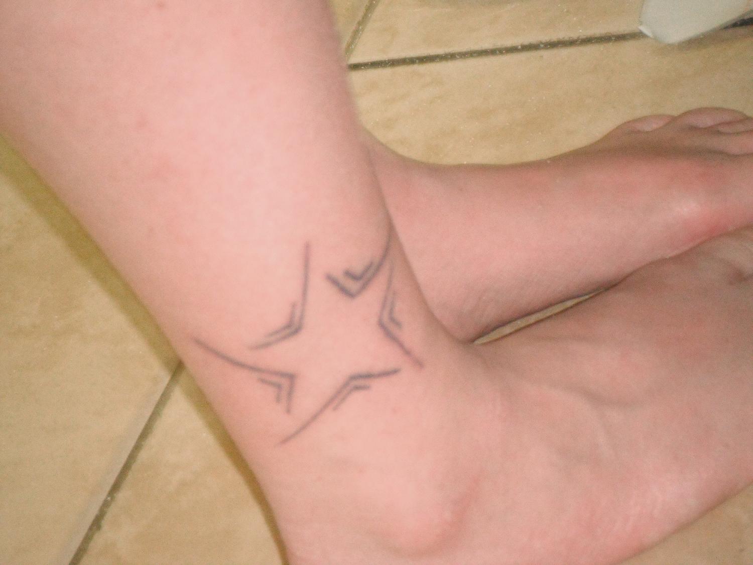 Here is Frankies chevron style star she has the same on each ankle