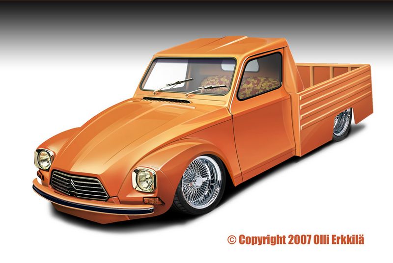 I am not a fan of polyester resin and ABS plastic kit-cars that is sold this days on the market based on 2cv. If you look Hoffman cabriolet... they put new plastic part over the old rusted body and I think that is not good work. Also that 2cv pick-up that is sold around the market ... still strange ugly cars . why they don't make pick-ups 2cv like it was original? The one and only beautiful 2cv pick-up 2cv ever made. I can do that , but not in plastic.