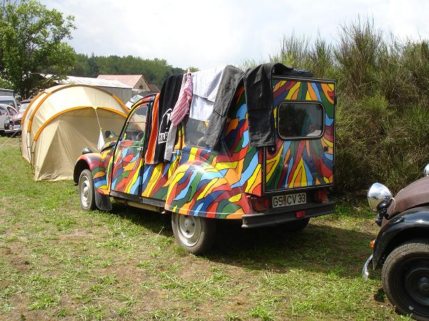 Tom Duckpower wrote: Neil wrote: That guy was amazing. The car was as rotten as a pear. One evening we walked past & he had all the front panel work off & the engine out - the next day he had another engine in minus the cooling shrouds/tinware... The following day the engine was still minus loads of bits & with the panels strewn around the area & the owner was sat behind the steering wheel casually working through a crossword! Brilliant! Its was quite rotten yes.. Many people were surprised that my car had made it... But with this car a few meters down the road they were even more surprised  He started Wednesday-morning at 6h, with dismantling the front of the car.. And always many people gathering round him, and he kept on spannering on the car, with a basic tool kit. The "new" engine had one of its spark plugs stuck in the head, but came loose when my dad borrowed him his tools. The insulator and electrodes were completely missing, on both plugs. They engine looked liked is had been stored in a damp garage or something, it was very oxidized. When he was ready to start the car, it wouldn't work, due to a bad battery... After some starting, the starter motor began to smoke, and also the cables got very hot.. Punky and me were watching all this, and it came to our mind the fuelpump was faulty because there was no smell of pertol, nor a load of fuel under de manifold.. The belgium guy working on the car together with the owner kept on believing it was a ignition/coil problem. Punky and me still saying that there wasn't any fuel getting to the carb, but because we don't have grey hair, and aren't 50 years old, they didn't listen to us.. After a while punky said it directly to the owner and he started to change the pump.. Then it took some time, but eventually the car started.. Also had some fun watching a guy from portugal changing his doorlocks... Took him 1,5h on a pace that was really boring.. I would have done it in less than 5 minutes  I have to admit, this guy made it for me !....totally bonkers and yet real good fun. I kept watching him and it was amazing to see so much madness under one bonnet ! Attachment: